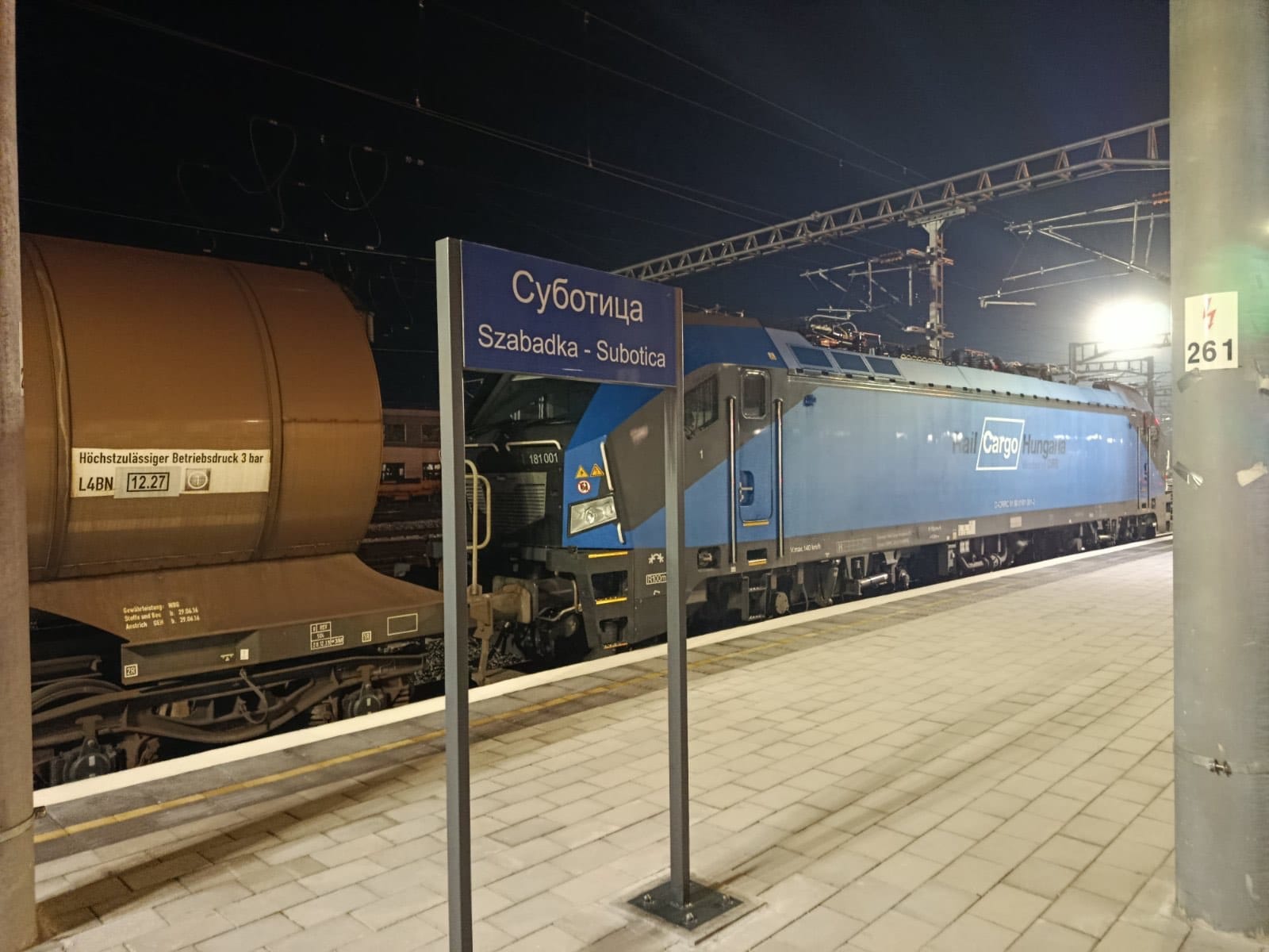 Теретна железничка композиција мађарског националног превозника у робном саобраћају Rail Cargo Hungaria, која је кренула из Мађарске и у саставу имала двадесет цистерни, прешла је српско-мађарску државну границу и вечерас у 18,14 сати стигла у железничку станицу Суботица. Теретна железничка композиција наставља даље своју вожњу ка Нови Сад Ранжирној, као свом коначном одредишту.